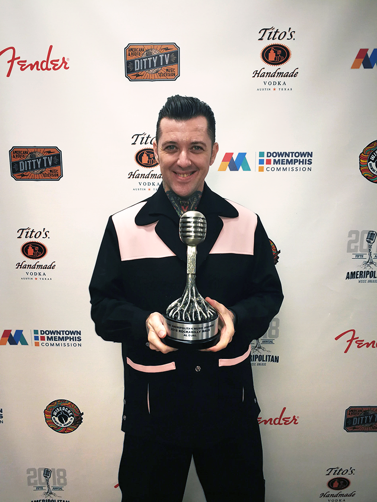 Al Dual se ha convertido en el primer español en triunfar en la cuna del Rockabilly, en la ciudad estadounidense de Memphis (Tennessee), donde participó en la final de los prestigiosos premios «Ameripolitan«. Al Dual, que actuó el pasado 11 de febrero en el Graceland Theatre de Memphis (Tennessee), se alzó con el título de «Mejor Solista Rockabilly» durante la gala de la 5ª Edición de los Ameripolitan Music Awards 2018 celebrada el día 13 del mismo mes. A pesar de la dura competencia que tenía en su categoría, ya que se disputaba el premio con artistas de la talla de Art Adams o Levi Dexter, fue Al Dual quien se hizo con el merecido galardón.